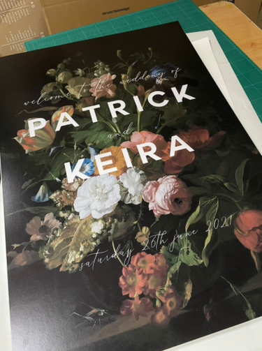 A1 Prints on foamcore board, perfect for welcome signs and seating charts.